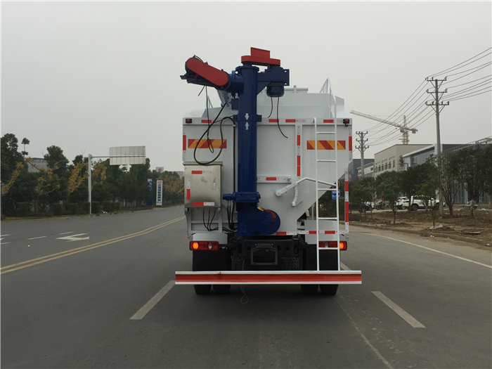 上裝罐體:罐體材質(zhì)采用4mm優(yōu)質(zhì)碳鋼板,整車3條絞龍,由3個5.5KW電機380V外接電源帶動,頂部絞龍用液壓控制舉升,可左右旋轉(zhuǎn)180°。罐體內(nèi)分為叁個倉,可以獨立控制各分倉卸料順序和速度。(備注:此報價為標(biāo)配,國產(chǎn)電機,德力西電柜)